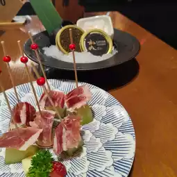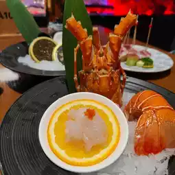 You need to wear shoe covers when entering the restaurant. After you sit down, the waiter will ask you to choose one of several main dishes. This is limited and each person can only have one. We chose lobster sashimi, Buddha Jumps Over the Wall, caviar, and the Parma ham with honeydew melon was given to us by the store.
