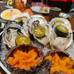 The oysters are fresh, the sea urchins are fresh, the various shrimps and sashimi are also fresh, but the scallops are not so good, the cooked food is just so-so, and the baked shrimp is not good. For drinks, I tried their hand-shaken drinks and ginger tea, both were good. There is a pot of ginger tea at each table to warm up the customer's stomach.