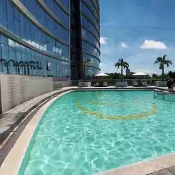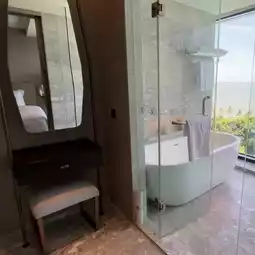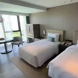Pearl Harbor Bay Hotel, enjoy one of the first choice of five-star hotels, the hotel uses simple white as the main tone is very elegant, room decoration is very stylish, there are two single beds, bathtub facing the sea is really amazing, view overlooking the beautiful swimming pool, swimming pool need to bring your own swim cap
