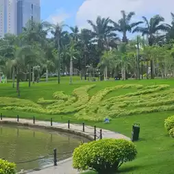 From the hotel walk more than 10 minutes to the waterfront park, the door of the big white rabbit shape is very cute 😀 beautiful environment, forest road, lakeside black swan is very popular, people fishing, boating, playing, etc.