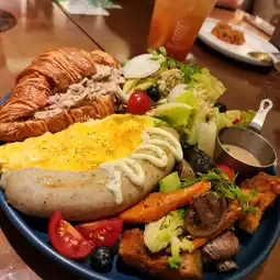 A group of friends went to this small shop in Qianshan, Zhuhai for brunch and coffee. We ordered a double croissant 🥐 all-day meal and a tomato spicy red shrimp risotto 🦐🥘, plus some snacks. In addition to the croissant, this double all-day meal also includes Bologna herb pasta 🍝, fried chicken and Japanese caramel pudding 🍮, which is very rich. The red shrimp risotto is also quite good. The fried chicken and potato wedges are fried crispy and delicious. The double pepper beef toast 🥪 is delicious. The coffee drinks here ☕️🥤 are also of high quality. It is a very satisfying meal. Coupled with the leisurely and comfortable environment of the small shop here, it is indeed a cost-effective choice 👍🏻