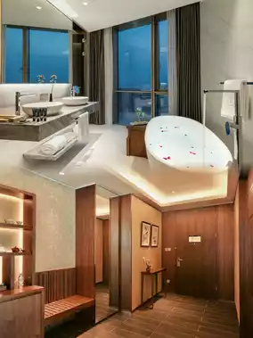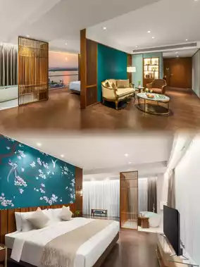 The hotel is located on the west coast of Hengqin Island, a 15-minute drive from Macau, and can reach Hong Kong directly within an hour through the Hong Kong-Zhuhai-Macao Bridge. Nearby are the Oriental Golf Club, Mangzhou Wetland Park, Flower Sea Corridor, etc.