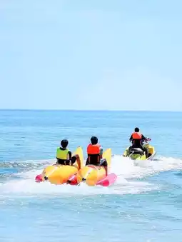 At low tide, you can take the kids to the beach to experience sea chasing, shell picking, and other beach games like sand figure building. For adults, water sports like jet skiing and banana boating are recommended.