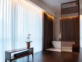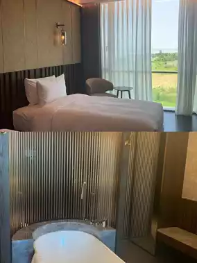The hotel has a total of 133 rooms and suites, with a starting area of 45 square meters. They are mainly divided into different views such as garden view, bridge view, and sunset view. However, even with such a large size, it still designed 8 different colors and 18 unique house types.