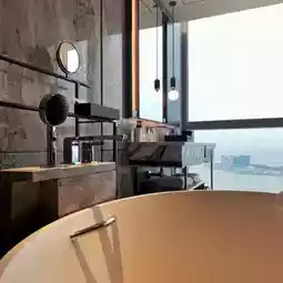 The design of the bathroom space is even more ingenious. The floor tiles and wall tiles are all made of the same white main marble. The intervals of various functional spaces are also reasonable and practical. The bathtub next to the floor-to-ceiling window is a highlight worth spending time experiencing.