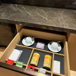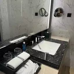Hyatt Regency Hengqin is a 30-minute drive from the Hong Kong-Zhuhai-Macao Bridge Port. The suite has double basins and double toilets. Four small ginseng fruits are given as welcome fruit. From 17:30 to 19:30, the Happy Hour at the Regency Club has freshly cooked noodles and small Nagasaki cakes with the hotel logo printed on them. The hotel has special buses to Chimelong and the port every day, so it is very convenient to go to Chimelong. Breakfast is highly recommended. The fully open kitchen makes the buffet restaurant look very large. In addition to the usual Chinese and Western breakfasts, there are also freshly made pancakes, Cantonese rice rolls, freshly fried dough sticks, freshly fried pot stickers, and tofu pudding, which are worth recommending.
