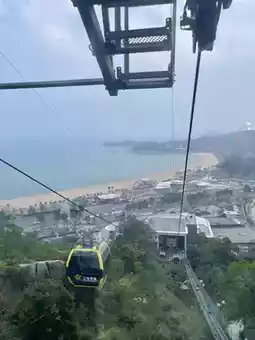 Jingshan Cableway is a famous attraction in Zhuhai. You can take the cable car up the mountain and then take the cable car down the mountain. There is an observation deck after going up the mountain, where you can enjoy the view of the Sun and Moon Shell from a distance. Each sliding car can carry two people, or you can request to sit alone.