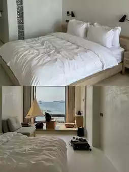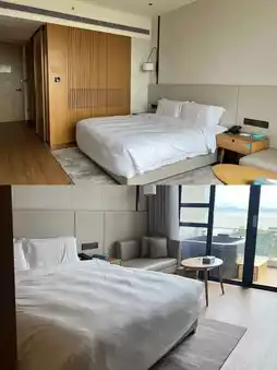 The room is spacious and comfortable, with elegant decoration. Each room has a beautiful view. When you wake up in the morning, the sun shines through the window on your face. It feels so wonderful. The bedding is soft and comfortable, allowing you to have a good night's sleep.