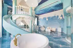 A carousel, a super large slide, smart room facilities, a huge screen projection, a starry sky ceiling, and two large round bunk beds meet the travel needs of a family. There are also a variety of themed rooms for you to choose from!