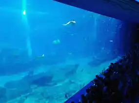 The aquarium itself was built for three years. It is located on an area of 132 hectares and has seven themed areas that symbolize parts of the ocean. In addition, there are water attractions, a circus, a 3D cinema and hotels on this territory.