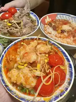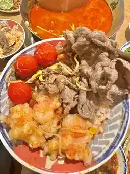 Sour soup hot pot 🥘 Remember to drink a bowl of soup before blanching things, sour and refreshing 👍 tender beef, this must be ordered super cost-effective, 32 a large plate can eat a big satisfaction! It's delicious to eat directly after blanching or dipping in water 🤤 There are also tiger prawns, fresh and chewy 🦐
