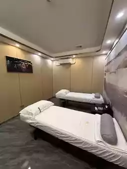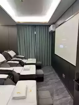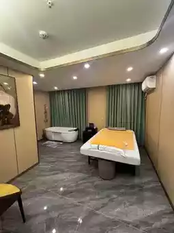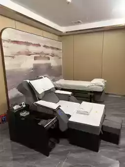 Sauna, drinks and fruits are also provided. The massage mainly targets tired parts, such as shoulders. The massager will go out to get cupping/scraping in the middle of the massage. After use, the massager will wash his hands and massage his head.