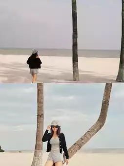 For busy city dwellers, this is the perfect short-trip destination. Many beauties like to take photos under the iconic leaning tree🌲, which may require patience. However, I believe the reef area by the sea is the best place to take photos, and the sunset🌇 view there is even more captivating.