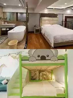The room has 1 1.8-meter bunk bed, which can accommodate 4 people, which is very suitable for families. The room area is 37-48 square meters, spacious and comfortable.