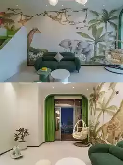 🌳Forest-themed room: feel the breath of nature, as if living in a small wooden house in the forest.