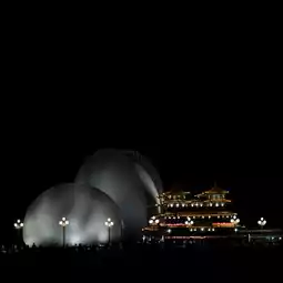 The Zhuhai Sun and Moon Shell is one of Zhuhai's iconic landmarks. Located on the beautiful coastline, it resembles a pair of shells, symbolizing Zhuhai's maritime culture and romantic atmosphere. When night falls, the Sun and Moon Shell is adorned with colorful lights, dazzling like stars falling onto the sea, attracting numerous tourists to admire its beauty.