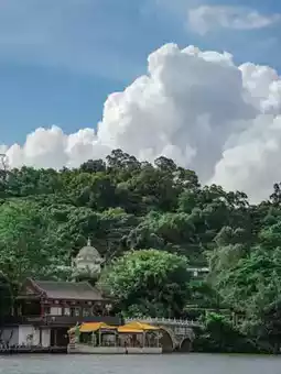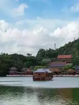 The New Yuanming Palace in Zhuhai is a precise 1:1 replica of ten scenic spots from Beijing's Old Summer Palace. It is a 4A-level scenic area. Surrounded by mountains on three sides, the southern side is very flat and open, with the Fuhai Lake covering an area of 80,000 square meters.