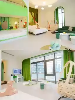 The room layout is also very user-friendly, with a 1.8m bunk bed design that can easily accommodate more people. The hotel facilities are also very complete, from detailed tissue boxes to high-quality toiletries, and even children's slippers are available. The hotel also thoughtfully prepares small tents, rocking horses, and cradles that children like, so that children can have fun during the trip.