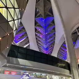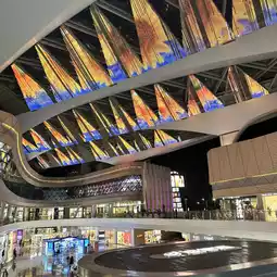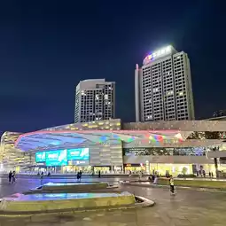 The entire mall feels different from the daytime one I visited last time. There are fewer people and there are some beautiful lights and large screens with colorful colors.