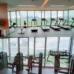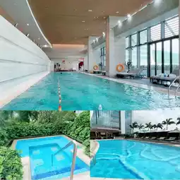 〈Hyatt Regency Hengqin〉 The room design uses a lot of wooden elements, giving it a soft and comfortable feel 💟💟💟. The bathroom features white marble walls and a black marble sink, creating an elegant and luxurious atmosphere ♥️♥️♥️. The mini bar is stocked with a variety of tea bags and coffee, all available for free 👍👍👍. The hotel has both indoor and outdoor swimming pools, and swimming caps are required. There is also a hot tub next to the pool with strong water jets, perfect for a vacation 😍😍😍😍. The gym offers a great view with floor-to-ceiling windows. A hotel with good value for money. 👍👍👍👍