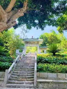 Heading north from the park entrance, visitors can climb the stone steps built to commemorate the return of Macau. The scenery along the way is beautiful. After reaching the top of the mountain, you can overlook the panoramic view of Zhuhai city, which is refreshing.