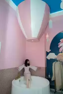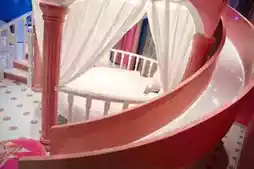 Finally, based on today's outfit color, I chose the pink princess room full of childlike and dreamy vibes, with a slide and carousel. Even though I had seen the pictures, I was still amazed when I opened the door.