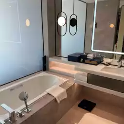 🛏The design of the room is also surprising. The modern and simple style is matched with warm lighting, creating a comfortable and relaxing atmosphere. The bedding is soft and comfortable. Lying on it feels like falling into a cloud, allowing you to have a good night's sleep. The bathroom is very large, with a good separation of wet and dry areas, and is equipped with high-end toiletries. Every detail reflects the quality of the hotel.