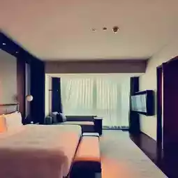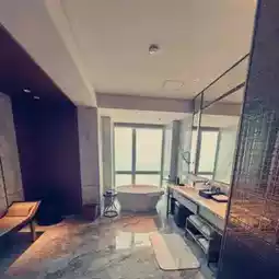 The room design is stylish and luxurious, the environment is clean and well-managed🤩The lighting and scenery are very good! The bed is moderately sized and hard, the bathroom is spacious, with dry and wet areas separated, and equipped with a large round bathtub. You can enjoy the beautiful city view while taking a bath. It is definitely a luxurious accommodation experience🫶🫶