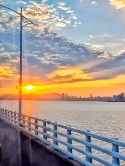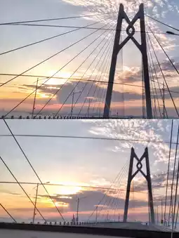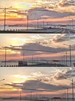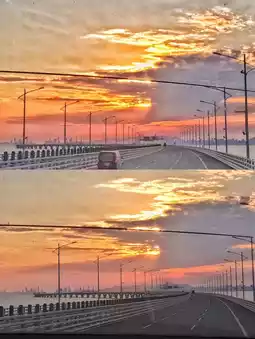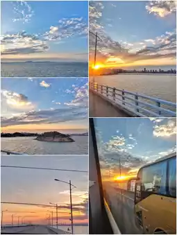 My mom's biggest wish for this trip to Guangzhou, Zhuhai, and Shenzhen was to visit the Hong Kong-Zhuhai-Macao Bridge. She asked me to book tickets early, and I followed the official account. Adult tickets are CNY 188, and senior tickets are CNY 128. I booked the time slot from 4:00 pm to 6:00 pm on the 27th, just to see the sunset. On the return trip, we were the first to board the bus and sat in the first row, so we didn't miss the beautiful moment of watching the sunset on the bridge.