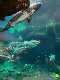 Here, colorful fish swim through giant aquariums, and dolphins and sea lions showcase their amazing skills on stage.