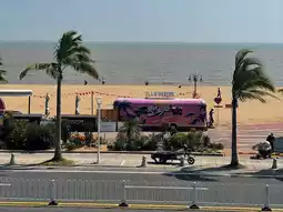 There is a wide view here, offering a panoramic view of the bustling city and the beautiful seaside.
