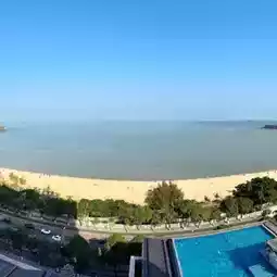 Huafa's products did not disappoint. The hotel is located next to Shijingshan Mountain, has an extra-wide balcony, and faces the sea. Just by looking at the exterior, you can imagine how beautiful the view inside the room is.