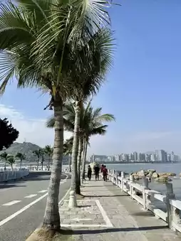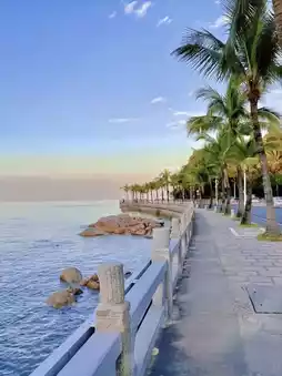 In the evening, I came to Zhuhai Lover's Road. This coastal avenue with a total length of more than 20 kilometers is like a silk screen belt of the city, connecting the sea, sky and prosperity. The sea breeze caresses gently, carrying a salty scent. The sea in the distance ripples. The setting sun spreads its golden afterglow across the sky, casting a romantic filter over the entire road. Strolling along Lover's Road, on the left is the rippling South China Sea, on the right are city buildings shaded by vegetation, pedestrians are leisurely, cyclists' bells ring crisply, and every step makes you feel the poetry and calmness of life. Passing by the Zhuhai Fisher Girl Statue, she gazes at the sea and sky, gentle and firm, like a representation of love and dreams. As night falls, street lights light up one after another, couples snuggle and whisper, children laugh and chase each other. This road is not only a scenic name card of Zhuhai, but also carries people's joy and thoughts. Walking on the Lovers' Road, it feels like stepping into a leisurely and poetic painting, and my heart becomes soft and peaceful with the sound of waves.