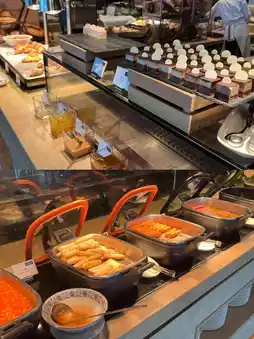 Breakfast is at the Feast restaurant on the 3rd floor of the hotel, which has the same beautiful sea view as the rooms. Although there were many guests that day and no staff to seat us, so we had to find our own seats, the dining area is large. When we arrived at 9:00, there were very few empty tables, but the breakfast selection was extensive, fully reflecting the generosity of the hotel and its owner. The afternoon tea at the executive lounge was relatively simple, with only some cakes and fruit, but it provided a comfortable place for business negotiations and chats.