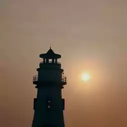 Looking up, the lighthouse stands tall on the coast, its silhouette strikingly beautiful against the backdrop of the setting sun. Its upright form resembles a guardian of time, witnessing the rise and fall of the sun, the ebb and flow of the tides. Every line and texture seems to hold stories of the past, inviting one to glimpse the silent passage of time through its presence. I can't help but reach out, letting my fingertips gently touch the sunlight streaming down. That fleeting sensation feels like the flutter of a heart at the first stirrings of love, or the glimmer of hope in the darkness.