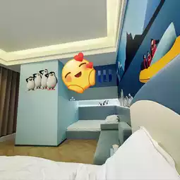 Upon check-in, the hotel gave us an afternoon tea dessert voucher. The room we stayed in was truly unique, featuring a large bed on one side and a bunk bed on the other, with a spacious layout. The hotel also has a children's play area, including a claw machine. We spent just 10 yuan and managed to win three plush toys, which made the kids very happy 💖.