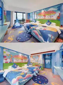 2. Family-friendly: Rich family entertainment facilities and playfully designed family children's rooms with space, racing car, rubber duck, and other themed designs allow families to enjoy happy times together.