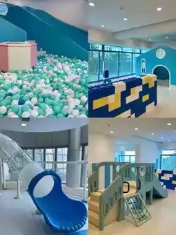A fitness room, open-air seaside pool, kids' club, wellness center, and even a spacious outdoor lawn for yoga.