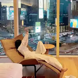 The hotel lobby features modern art decor with a strong Instagram vibe