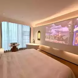 This time, I booked a king bed room on the 6th floor. The view is spacious and bright! The room is equipped with a giant projection screen, AI voice control devices, a smart toilet, and a bathroom with separate wet and dry areas—everything exudes a sense of luxury! The mattress is perfectly balanced between soft and firm, making it super comfortable to wake up naturally. My favorite feature is the bathtub 🛁—soaking in it while gazing at the city view outside the window is incredibly healing!