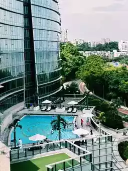 Although the hotel was renovated in 2018, the facilities are modern and well-maintained. The rooms are spacious and stylish. Opening the curtains reveals views of the Hong Kong-Zhuhai-Macao Bridge and the outdoor swimming pool.