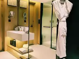 Rooms: Although the rooms are listed as 25 square meters, they feel more spacious and are very comfortable. The design of the stool next to the bedside table is particularly appealing, with a high-quality feel and a power outlet underneath. As a new hotel, its facilities meet modern needs, featuring multiple power outlets with USB ports. The bathroom is very comfortable, with strong water pressure for showers, and the shampoo, conditioner, and body wash have a pleasant fragrance. The curtains are motorized, and the toilet is also very comfortable.