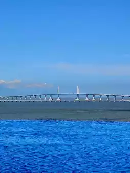 The hotel's infinity pool is one of its biggest highlights. It blends with the sea, as if you are swimming in the sea, and overlooks the Hong Kong-Zhuhai-Macao Bridge, providing amazing photo opportunities. There are also a large number of lounge chairs next to the pool, where guests can enjoy the sun and relax.