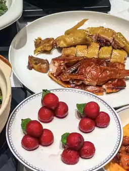 Half is the original salt-baked chicken, and the other half is the roasted chicken with crispy skin and tender meat. It satisfies two tastes at once. The salt-baked chicken retains the most original tenderness of the chicken, paired with ginger and garlic sauce, refreshing and delicious, while the roasted chicken is golden and crispy on the outside and juicy inside. Take a bite
