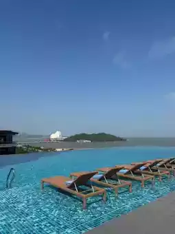 🌊 The infinity pool with sea views is the biggest highlight. Swimming while gazing at the Sun Moon Shell is an irresistible experience. Can’t wait for the rooftop bar to open!