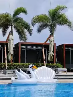 In summer, the 5th-floor pool was our favorite spot. Sipping coconut water🥫 or beer🍾 while playing with cartoon floats, then capturing sunset photos by the pool📸 – pure bliss🌇!