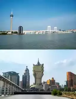 Crossing Governador Nobre de Carvalho Bridge, landmarks like Grand Lisboa, MGM, and Wynn unfold like a grand bonsai.