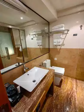 The lobby is quite luxurious, there are plenty of public spaces to sit, there is a cha chaan teng, convenience store and massage. The room window has enough views of the parking lot but is open; there is a terrace but can't go out. The number of rooms is not large, but the advantage is that it is quite clean and tidy; the supplies are very complete, bathroom supplies Peter Thomas Roth. The bed is always comfortable, and the slippers are great.