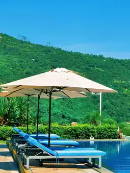 Or indulge at✨ **Alila Zhuhai Dong'ao Island**, where cliffside terraces face endless blue, waves crashing below, the wind salty with island vibes.