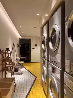 The laundry room on the 14th floor turned out to be my "healing discovery." Silver-gray washing machines lined up neatly, complete with hangers and an iron. On a weekend afternoon, sitting in a lounge chair watching the slow rotation of the washing machine drum became an oddly therapeutic experience.
